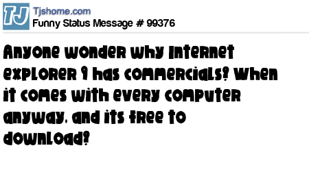 X says Anyone wonder why Internet explorer 9 has commercials? When it comes with every computer anyway, and its free to download?