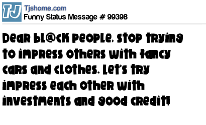 X says Dear bl@ck people, stop trying to impress others with fancy cars and clothes. Let's try impress each other with investments and good credit!