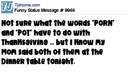 X is not sure what the words "PORN" and "POT" have to do with Thanksgiving ... but I know my Mom said both of them at the Dinner table tonight.