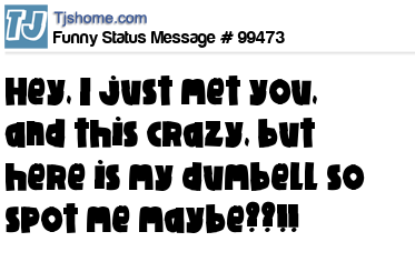 X Hey, I just met you, and this crazy, but here is my dumbell so spot me maybe??!!