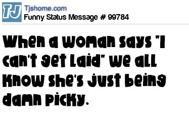 X says When a woman says "I can't get laid" we all know she's just being damn picky.