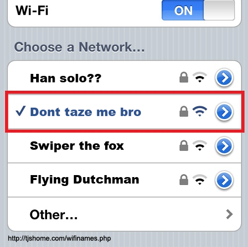 Funny WiFi Name #4445 [Dont taze me bro! ]