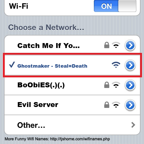 Funny WiFi Name #4455 [Ghostmaker - Steal=Death ]