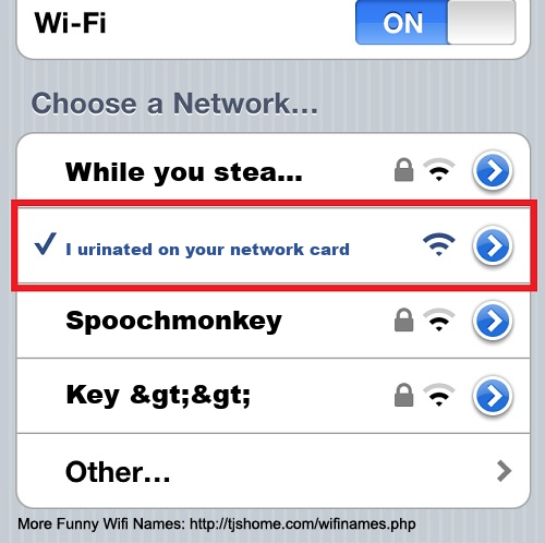 Funny WiFi Name #4486 [I urinated on your network card ]