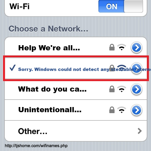 Funny WiFi Name #4649 [Sorry. Windows could not detect any stealable internets. ]