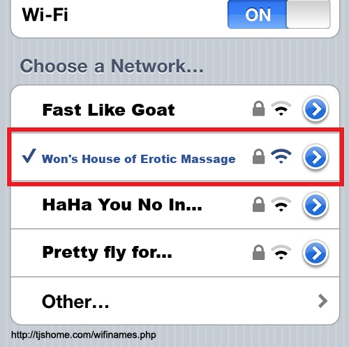 Funny WiFi Name #4694 [Won's House of Erotic Massage ]