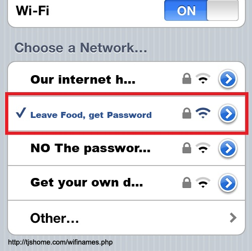 Funny WiFi Name #4715 [Leave Food, get Password ]