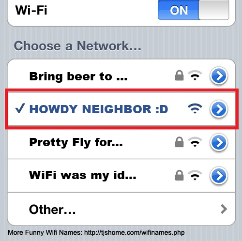 Funny WiFi Name #4759 [HOWDY NEIGHBOR! :D ]