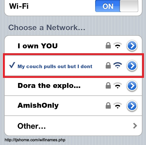 Funny WiFi Name #4789 [My couch pulls out but I dont ]