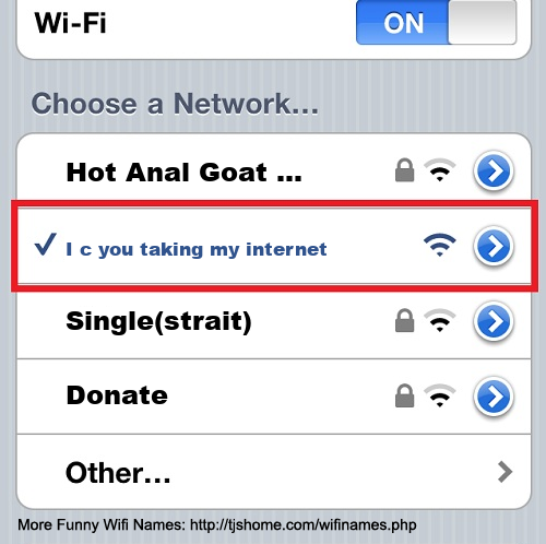Funny WiFi Name #4828 [I c you taking my internet ]