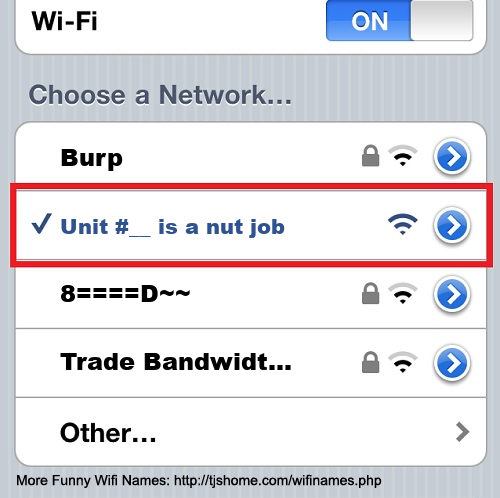 Funny WiFi Name #4858 [Unit #__ is a nut job! ]