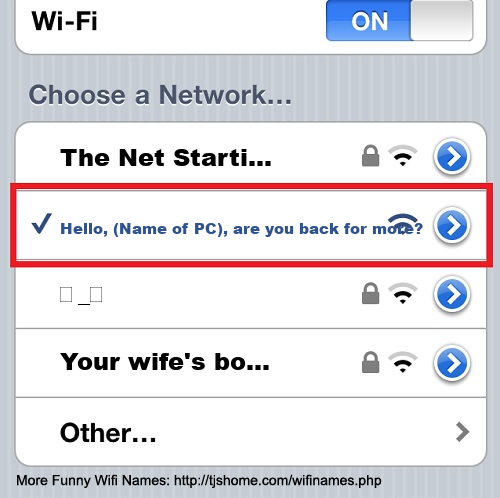 Funny WiFi Name #4888 [Hello, (Name of PC), are you back for more? ]