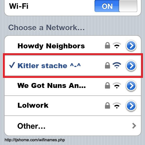 Funny WiFi Name #4954 [Kitler stache ^-^ ]