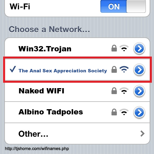 Funny WiFi Name #5028 [The Anal Sex Appreciation Society ]