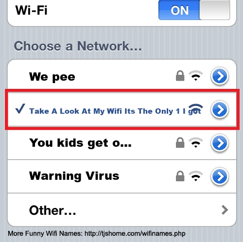 Funny WiFi Name #5155 [Take A Look At My Wifi Its The Only 1 I got ]