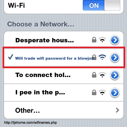 Funny WiFi Name #5162 [Will trade wifi password for a blowjob ]