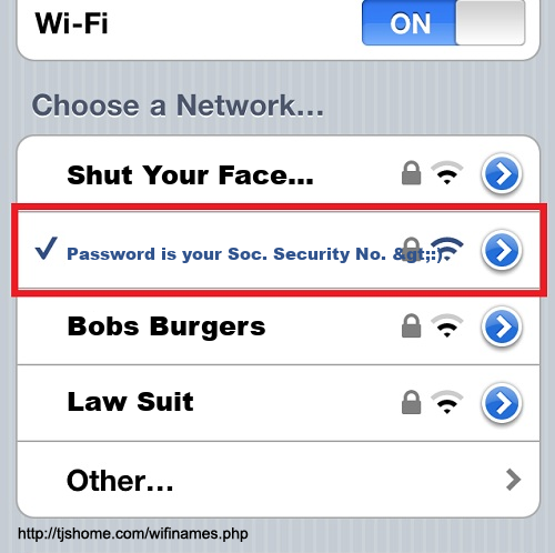 Funny WiFi Name #5177 [Password is your Soc. Security No. >:) ]