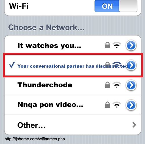 Funny WiFi Name #5233 [Your conversational partner has disconnected ]