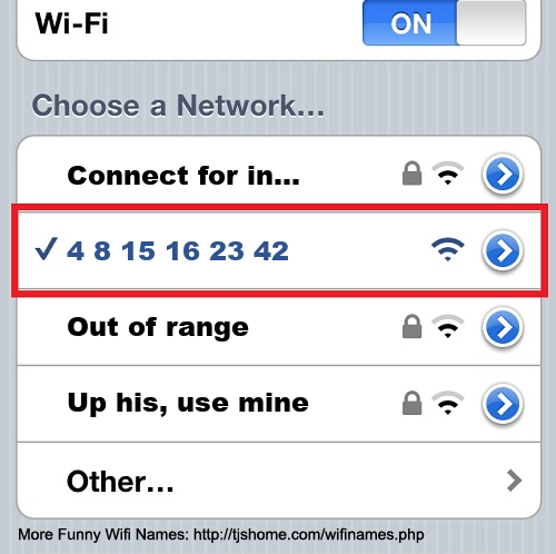 Funny WiFi Name #5268 [4 8 15 16 23 42 ]