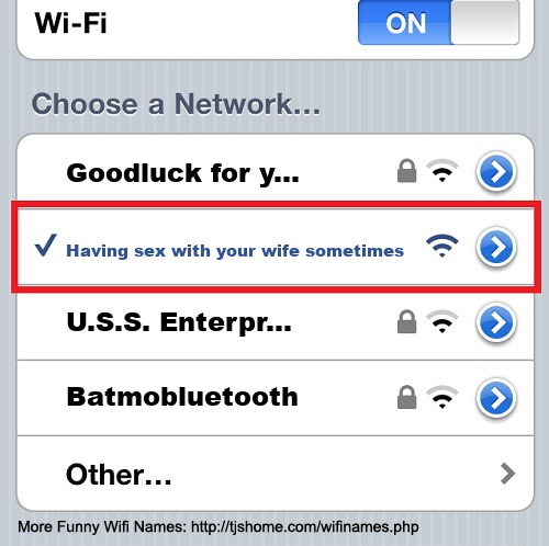 Funny WiFi Name #5275 [Having sex with your wife sometimes ]