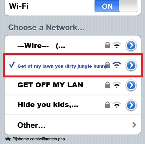 Funny WiFi Name #5310 [Get of my lawn you dirty jungle bunny!! ]
