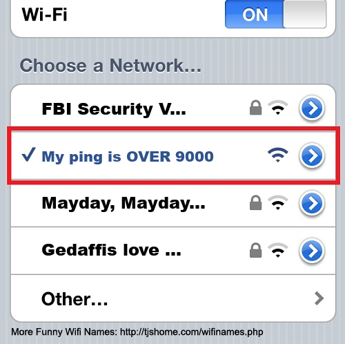 Funny WiFi Name #5368 [My ping is OVER 9000 ]