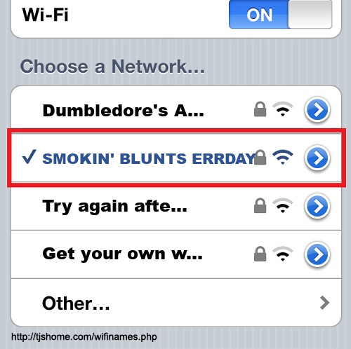 Funny WiFi Name #5386 [SMOKIN' BLUNTS ERRDAY ]