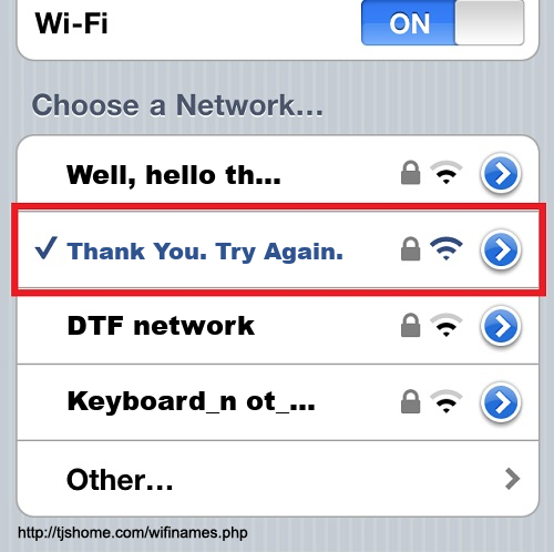 Funny WiFi Name #5403 [Thank You. Try Again. ]