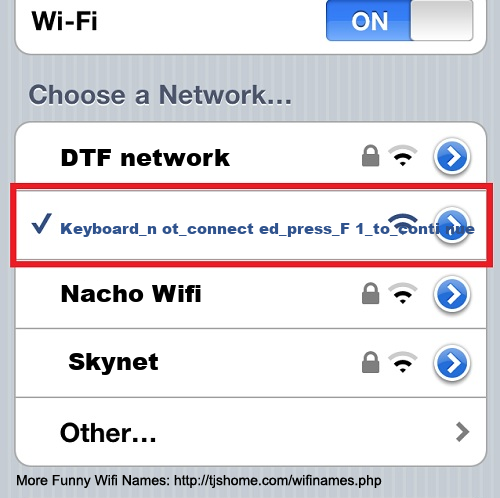 Funny WiFi Name #5409 [Keyboard_n ot_connect ed_press_F 1_to_conti nue ]
