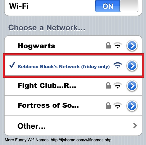 Funny WiFi Name #5415 [Rebbeca Black's Network (friday only) ]