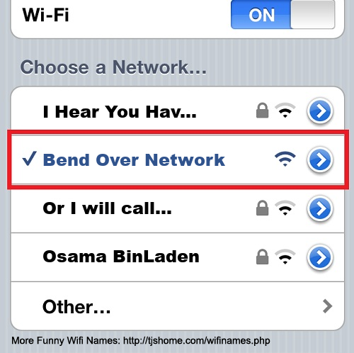 Funny WiFi Name #5435 [Bend Over Network ]