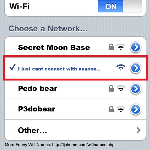 Funny WiFi Name #5476 [I just cant connect with anyone... ]