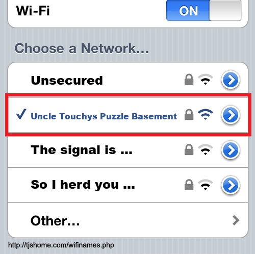 Funny WiFi Name #5486 [Uncle Touchys Puzzle Basement ]