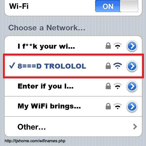 Funny WiFi Name #5569 [8===D TROLOLOL ]