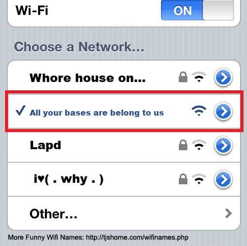 Funny WiFi Name #5575 [All your bases are belong to us ]