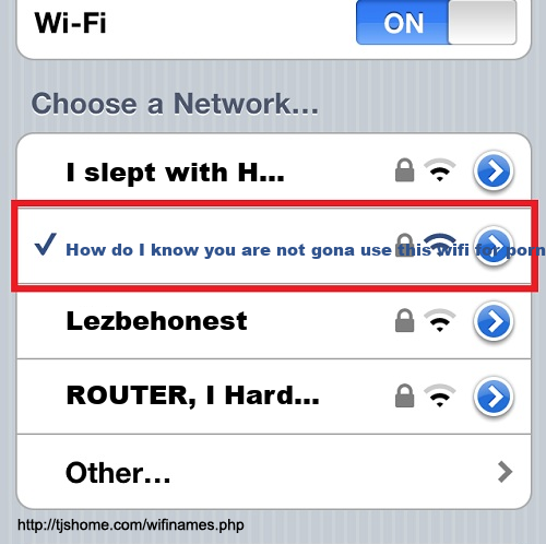 Funny WiFi Name #5634 [How do I know you are not gona use this wifi for porn? ]