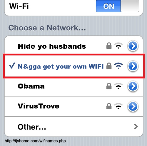Funny WiFi Name #5644 [N&gga get your own WIFI ]