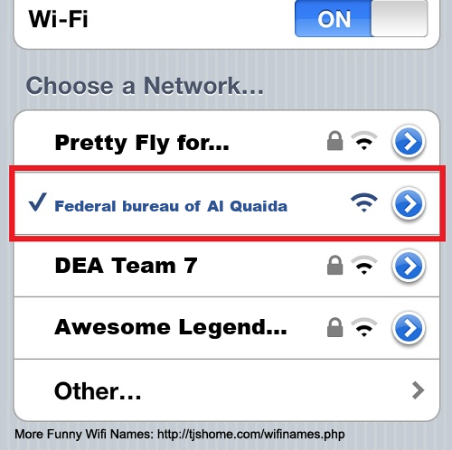 Funny WiFi Name #5662 [Federal bureau of Al Quaida ]