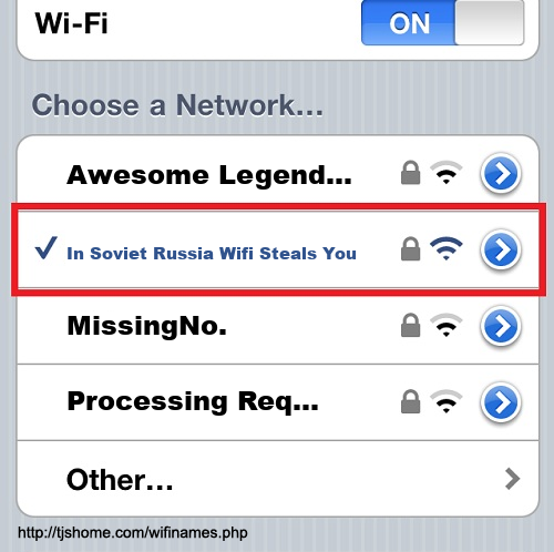 Funny WiFi Name #5665 [In Soviet Russia Wifi Steals You ]