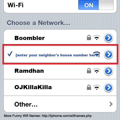 Funny WiFi Name #5730 [ [enter your neighbor's house number here] ]