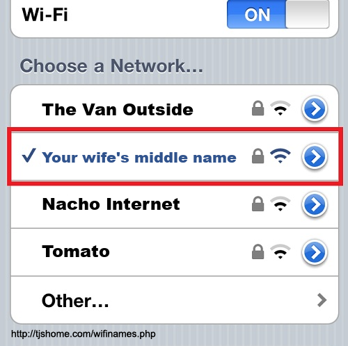 Funny WiFi Name #5803 [Your wife's middle name ]