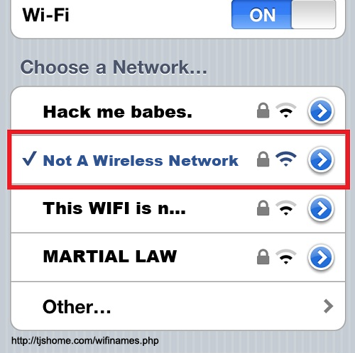Funny WiFi Name #5884 [Not A Wireless Network ]