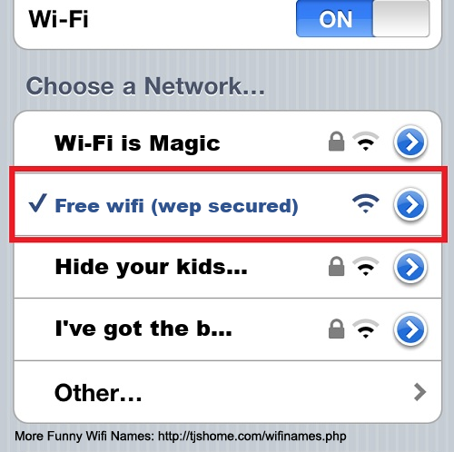 Funny WiFi Name #5945 [Free wifi (wep secured) ]