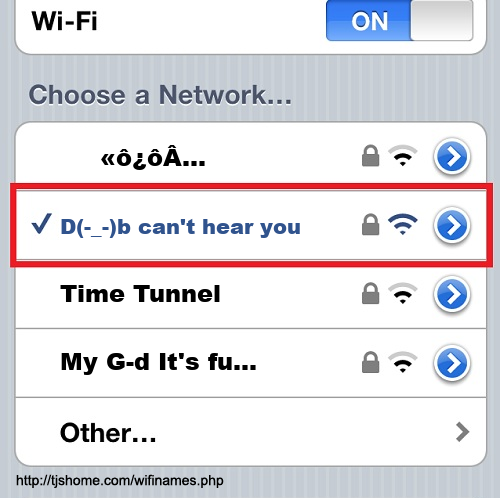 Funny WiFi Name #5979 [D(-_-)b can't hear you! ]