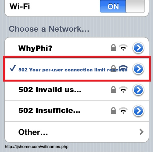 Funny WiFi Name #5984 [502 Your per-user connection limit reached ]