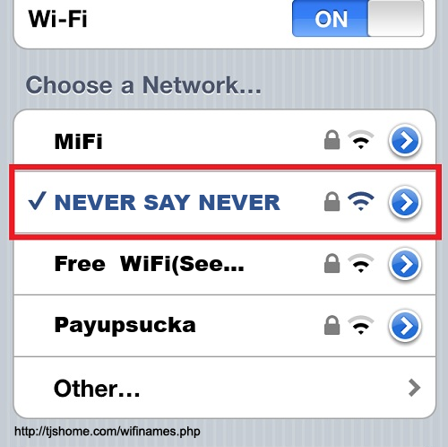 Funny WiFi Name #6123 [NEVER SAY NEVER!!!!! ]
