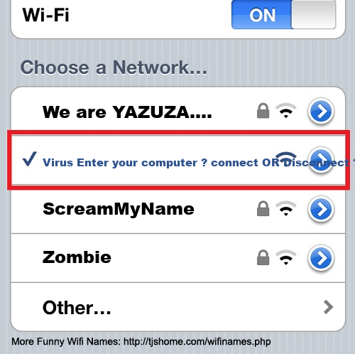 Funny WiFi Name #6130 [Virus Enter your computer ? connect OR Disconnect ? ]