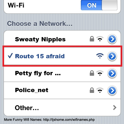 Funny WiFi Name #6145 [Route 15 afraid ]