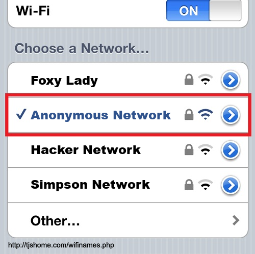 Funny WiFi Name #6205 [Anonymous Network ]