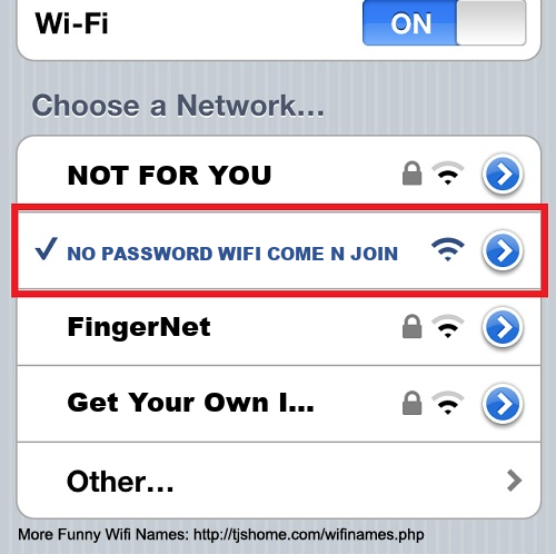 Funny WiFi Name #6256 [NO PASSWORD WIFI COME N JOIN ]